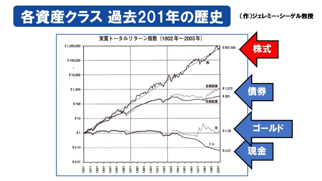 現金しか持っていないと実質的に資産が減っていってしまいますので、株式のようなインフレに強い資産をもって対策をしていく必要があると言えます。
