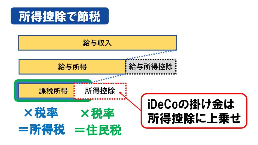 まずiDeCoには、所得控除によって所得税・住民税を節税できるという効果があります。