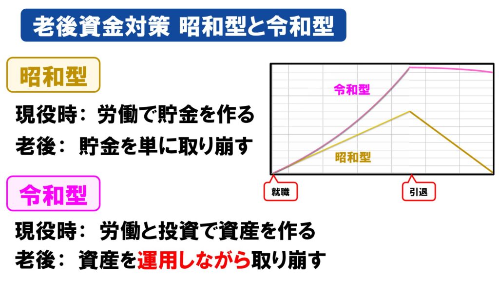 これまでは定年退職するまでに一生懸命に働いてつくってきた貯金を、人生の終わりを迎えるまでに単に取り崩していくというものでした。